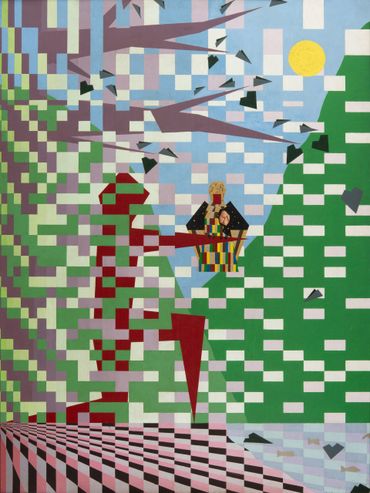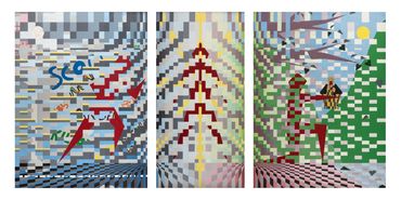 My father was a mechanical engineer, and I had access to his drafting supplies. In my early 20’s, I worked for about 7 years as a picture framer. My boss built a thriving business selling lithographs, fine art prints, and general framing. He dealt specifically though not exclusively, with two women who would sell art to corporations and then bring in 20 to 30 works that they promised to have framed in a week. After doing one of these mammoth jobs, they gave me a set of acrylics as a gift. I liked Vaserely, Escher, Dali and Klimt from seeing reproductions come through the gallery, so I went off. I consider my art to be Neo Geo, but I’m sure most people would not agree. Plus, I try different styles as the mood hits me. In “Reincarnation,” I tried, somewhat abysmally, to emulate Escher. Although I didn’t get his realism very well, the format lent itself perfectly to the idea of a never-ending upward climb through many lifetimes. There is basically a story with all my work ( including how the “Proposal” became “Divorce” thanks to Eddie the drunk…lol), and I would be glad to write to you if you are interested in my website. My current painting is called “Dragon Breath” and will be finished hopefully by next year, the year of the Dragon. I will be posting some smaller works, which will be for sale at a moderate price. These will not be multiple-run lithos but one-of-a-kind works.